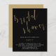 Script Bridal Shower Gold Black Invitation. A budget friendly SMALLER 4.5” x 5.6” alternative. Available in a SEMI GLOSS 110 lb CARD STOCK or a SATIN FINISH 80 lb THINNER PAPER STOCK. Envelopes are an optional extra. The main header is in a stylish gold set calligraphy and the rest of the text you can easily personalise. You can also change text and background colours on either side if you wish via the Customise Further option.