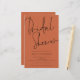 A LARGER size 5.5” x 8.5” at a budget price,. PLEASE NOTE THE OPTIONAL ENVELOPES ARE A LITTLE BIGGER IN SIZE AT 6.75” x 9” approx. This modern terracotta design for your Bridal Shower Invitees has set elegant script for Bridal Shower at the top and easily personalise with your details beneath. Shown in classic black and white, altough you can also change text and background colours on either side if you wish via the Customise Further option.