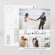 Elegant Budget "Love and Thanks" Hand Lettered Script Heart Elegant, Minimalist Photo Collage Affordable Wedding Thank You PostCard in Black and White. Simple cute wedding card template featuring four (4) photo on the front and one photo on the back side. With the text "Love and thanks" in a pretty hand lettered swash tail typography script font. Add your name and thank you message.