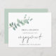 A value for money BUDGET alternative on a smaller size 4.5 x 5.6” semi-gloss 110lbs weight, which is of similar thickness to a postcard (however is not suitable to use as a postcard.). PLEASE NOTE there is ONE invite per sheet. Budget Script Eucalyptus Engagement Announcement. A minimalist botanical design to let everyone know your exciting news, Engagement is in a modern set script.The rest of the text you can easily personalise. Text and background colours can be changed if you wish via the customise further option.