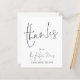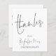 Budget Script Future Mrs Bridal Shower Thank You. A budget price SMALLER 4.5” x 5.6” alternative. Available in a SEMI GLOSS 110 lb CARD STOCK which is the default option (recommended for invitations), OR a SATIN FINISH 80 lb THINNER PAPER STOCK (ideal for enclosures). Envelopes are an optional extra and are slightly larger than the card size. Thanks and The Future Mrs are set in an elegant handwriting style script on the front and the rest of the text on each side you can easily personalise with your names, and your thank you message. Shown in black and white, however can be changed to any colour of your choice via the customise further option.