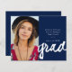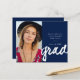 The Casual Script Grad | Simple Photo Graduation Announcement features handwritten typography and minimal type. The background colours can be changed to match your school colours. Let friends and family know you have a graduate and what their future plans may entail. The front has a vertical photo with name and school details. The back has a personal message and additional text. Click edit to customise this design and add your personal details and photo.