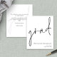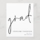 A budget priced smaller (4.5 x 5.6”) on a semi-gloss which is a 110 gsm card stock, similar in thickness to a postcard. PLEASE NOTE there is ONE per sheet. Envelopes are an optional extra and are slightly larger than the card size. Budget Script Graduate Announcement This simple monochrome design to announce the news of your graduate has informal set handwriting style script for the main header, grad, and easy to personalise typography to the bottom right hand side with your details and also your message on the back.