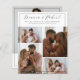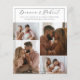 A simple and chic photo wedding invitation featuring elegant script calligraphy names and classic typography with 5 photos. The front of the budget cards features a 4 photo collage and the back has one big photo. The couple's names are written in beautiful script lettering at the top of the card, with the invitation text and the date of the wedding. We have chosen to show only the basic information on the front of the card while showcasing 4 of your favourite engagement photos so these cards can be used as cherished keepsakes or save-the-dates. The 4 photo grid features two portrait vertical photos and two landscape horizontal pictures. Cards reverse to a big photo of your choice with the rest of the event details below in minimalist serif typography. This simple and elegant invitation is perfect for a modern wedding. The minimal, versatile design is suitable for any season or wedding theme. We have chosen a timeless black-and-white colour combination for this design to be sure it matches your photos, but you can change any of the colours using Zazzle's design tool. To get started, click on "Personalise" and create your own unique wedding invitations. As part of the budget selection on Zazzle, this sheet isn't a standard invite size or paper quality. If you want this design on an invitation card you can find it in our store or use the Zazzle Make Machine to transfer it onto the product of your choice. Don't hesitate to contact me with any questions or custom order requests - I'll be happy to help!