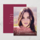 Budget Modern Elegant Script Photo Graduation Announcement featuring your photo and our trendy script overlay in white The back is a modern burgundy maroon, but all fonts and colours are easily modified. Stylish swirly text sets off your photo. Perfect for celebrating your graduate! Chic and darling. Please contact us at cedarandstring@gmail.com if you need assistance with the design or matching products.