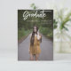 Announce your graduation with this simple script photo graduation announcement. This announcement features a script font and photo on the front. Customise text on the back with your own message.
