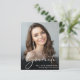 Celebrate your graduate's achievements with this stylish budget-friendly graduation announcement and party invitation. Her favourite photo fills the card with "Graduate" overlayed on top in a white script; underneath, add her name, school and class year. On the reverse side, add an additional photograph and a graduation party or open house details.