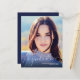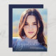 Budget Modern Elegant Script Photo Graduation Announcement featuring your photo and our trendy script overlay in white The back is a modern navy blue, but all fonts and colours are easily modified. Stylish swirly text sets off your photo. Perfect for celebrating your graduate! Chic and darling. Please contact us at cedarandstring@gmail.com if you need assistance with the design or matching products.