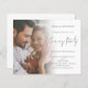 A value for money BUDGET alternative on a smaller size 4.5 x 5.6” semi-gloss 110lbs weight, which is of similar thickness to a postcard (however is not suitable to use as a postcard.). PLEASE NOTE there is ONE invite per sheet. Budget Script Photo QR Code Engagement Invitation. Simply replace the sample photo with your own favourite. A gradient overlay layer is on top of your photo so it fades out as it reaches the centre with the text partially overlaid on top. Evenine Party is in a modern set script and easily personalise the rest of the text. Replace the QR code on the back with a QR code to either the directions page to your venue website or your own wedding website. You can create QR codes for free online. Simply search “QR code creator” and lots of options come up to create for free. You can also delete the QR code and text on the back if not required via customise further.