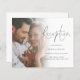 A value for money BUDGET alternative on a smaller size 4.5 x 5.6” semi-gloss 110lbs weight, which is of similar thickness to a postcard (however is not suitable to use as a postcard.). PLEASE NOTE there is ONE invite per sheet. Budget Script Photo QR Code Reception Details Enclosure. Simply replace the sample photo with your own favorite. A gradient overlay layer is on top of your photo so it fades out as it reaches the center with the text partially overlaid on top. Evenine Party is in a modern set script and easily personalise the rest of the text. Replace the QR code on the back with a QR code to your wedding website. You can create QR codes for free online. Simply search “QR code creator” and lots of options come up to create for free. You can also delete the QR code and text on the back if not required via customize further.