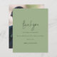 Script Photo Sage Green Wedding Thank You. A budget price SMALLER 4.5” x 5.6” alternative. Available in a SEMI-GLOSS 110 lb CARD STOCK which is the default option (thicker for invitations), OR a SATIN FINISH 80 lb THINNER PAPER STOCK (ideal for enclosures). Envelopes are an optional extra and are slightly larger than the card size. A minimalist typography design with a set stylish handwriting style script for Thank You. On the back replace the sample picture with your own favourite from your day as a keepsake for your guests. Easily personalise the rest of the text with your message and names.