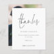 Script Photo Wedding Newlywed Thanks. A budget price SMALLER 4.5” x 5.6” alternative. Available in a SEMI-GLOSS 110 lb CARD STOCK which is the default option (thicker for invitations), OR a SATIN FINISH 80 lb THINNER PAPER STOCK (ideal for enclosures). Envelopes are an optional extra and are slightly larger than the card size. A minimalist contemporary design with a set stylish handwriting style script for Thanks. On the back replace the sample picture with your own favourite from your day as a keepsake for your guests. Easily personalise the rest of the text with your message and names.