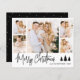 Budget Elegant Modern Calligraphy Script Simple Black and White 5 Photo Collage Multi Photo Christmas Card. This festive, minimalist, five (5) photo holiday card features a pretty photo collage, 3 pine tree doodle, „Merry Christmas” greeting text which is written in a whimsical hand lettered signature font type. On the reverse side snowy dots pattern with a nice family photo. Pretty greeting card for your family and friends in Winter Holiday season.
