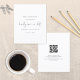 Script QR Code Simple Black and White. A budget price SMALLER 4.5” x 5.6” alternative. Available in a SEMI-GLOSS 110 lb CARD STOCK which is the default option (thicker for invitations), OR a SATIN FINISH 80 lb THINNER PAPER STOCK (ideal for enclosures). Add your QR code to your wedding website on the back. A simple and elegant black and white design to invite your guests to save your date. Kindly Save Our Date is in a modern set script is in the centre.The rest of the text you can easily personalise. Text and background colours can be changed if you wish to better suit your wedding theme via the customise further option.