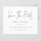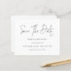 Script QR Code Wedding Save The Date. A budget price SMALLER 4.5” x 5.6” alternative. Available in a SEMI-GLOSS 110 lb CARD STOCK which is the default option (thicker for invitations), OR a SATIN FINISH 80 lb THINNER PAPER STOCK (ideal for enclosures). Simple elegance with Save The Date in a modern set script.The rest of the text you can easily personalise. With your QR code to your wedding website on the back. Shown here in black on white however the text and background colours can be changed if you wish via the customise further option.