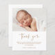 This modern photo baby baptism thank you card features hand lettered calligraphy script thank you art that is moveable and that you can easily change the colour of, a horizontal photo and editable text. Click the edit button to customise this design.