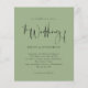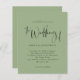 Script Sage Green Wedding Invitation A budget price SMALLER 4.5” x 5.6” alternative. Available in a SEMI-GLOSS 110 lb CARD STOCK which is the default option (thicker for invitations), OR a SATIN FINISH 80 lb THINNER PAPER STOCK (ideal for enclosures). Envelopes are an optional extra and are slightly larger than the card size. This elegant design has a stylish set typography in black for the main heading the Wedding Of on a Sage green background. The rest of the text you can easily personalise.