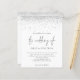 Elegant Script Silver Glitter Wedding Invitation. A budget price SMALLER 4.5” x 5.6” alternative. Available in a SEMI GLOSS 110 lb CARD STOCK which is the default option (recommended for invitations), OR a SATIN FINISH 80 lb THINNER PAPER STOCK (ideal for enclosures). Envelopes are an optional extra and are slightly larger than the card size. A stylish set typography in black for the main heading the Wedding Of complementing the rest of the text which you can easily personalise. A silver faux glitter border runs across the top on each side.