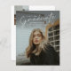 This budget photo graduation announcement invitation is simple and modern. It features a handwritten script graduate overlay and customisable name, school and photo on the front. The back offers congrats and event details with an additional 2 more photos. A great way to showcase your graduate.