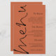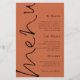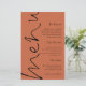 A budget price size 5.5” x 8.5”, This contemporary terracotta design has Menu in elegant set script running up the left hand side and the rest of the text is aligned to the right which you can easily personalise as well as your names and wedding date on the back. Text and background colours on either side can be changed to any of your choice via the customise further option.
