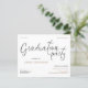 There are two paper options to choose from for this size (4.5 x 5.6”) in the Budget range. For this product, I would recommend the semi-gloss which is a 110 gsm card stock, similar in thickness to a postcard. The Satin option is a much thinner paper 80gsm. The default is set to semi-gloss. PLEASE NOTE there is ONE per sheet. Budget Script Text Graduation Party Invitation. A simple typographical design, with the main header, Graduation Party, in a set trendy black font. The rest of the text in black and gold is easily personalised and you can also change the editable text colours and style if you wish via the click to customise further option as well as the gold background on the back.