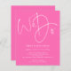 A value for money BUDGET alternative on a smaller size 4.5 x 5.6” semi-gloss 110lbs weight, which is of similar thickness to a postcard (however is not suitable to use as a postcard.). PLEASE NOTE there is ONE invite per sheet Budget Script We Do Hot Pink Wedding Invitation. A simple and elegant brightly coloured text design. Stylish set script We Do takes centre stage at the top.The rest of the text you can easily personalise. Text and background colours can be changed if you wish to better suit your wedding theme via the customise further option.