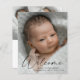 Modern Script Welcome Baby Photo Birth Details Thank you card. The back includes a second photo and thank you message that you can personalise or remove if you prefer to hand write your thank you. Click the edit button to customise this design.