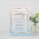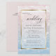 NEW! Affordable Budget Wedding | Stunning shimmering sparkly Ocean waters glistening in the setting sun - in pale shades of dusty rose pink and dusty blue - text appears on a sheer white sparkling gold edged frame that shows the design but allows the text to easily be read. Accented with beautiful elegant handwritten calligraphy. Easy to personalise wedding template.