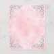 This elegant vintage-inspired wedding menu features the text in grey script and serif fonts, framed by a vintage silver foliage motif in four corners on a blush pink watercolor background. The frame and watercolor background are repeated on the reverse.