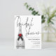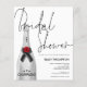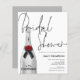 A budget price smaller 4.5" x 5.6" paper alternative. Does not include envelopes but there is an option to add them if you wish. A silver Champagne Bottle with elegant handwritten style black set script Bridal Shower overlapping slightly and a coordinating silver grey background on the other side. Easily personalise the rest of the details. You can also change text and background colours on either side if you wish via the Customise Further option.