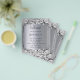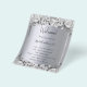 A modern, elegant, wedding program, timeline. Faux silver looking background, decorated with florals, flowers. Personalise and add your names and wedding details. Black coloured letters. If you have more text it's possible to reduce the line space and also add text on the back.