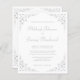 This elegant vintage-inspired formal wedding invitation features the text in silver grey script and serif fonts, framed by a delicate vintage silver vine motif. The reverse side provides space for wedding details, along with a QR code guests can scan to visit your website and RSVP, which saves the cost of printing and mailing separate RSVP cards.