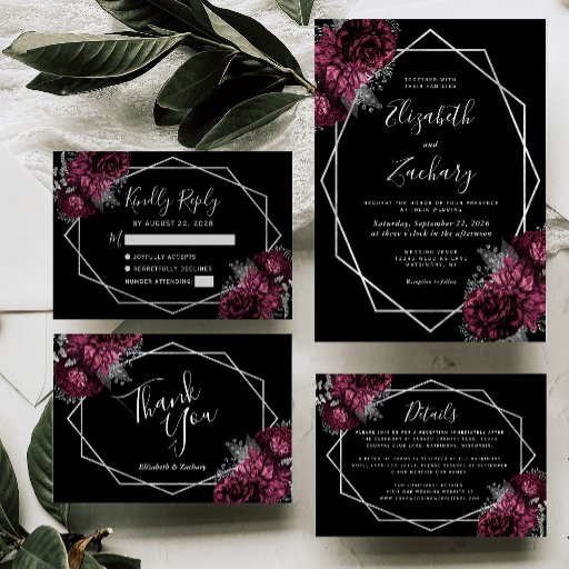 Burgundy Floral Silver Geometric Black WeddingDesigned by Akhates Designs