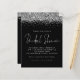 A value for money BUDGET alternative on a smaller size 4.5 x 5.6” semi-gloss 110lbs weight, which is of similar thickness to a postcard (however is not suitable to use as a postcard.). PLEASE NOTE there is ONE invite per sheet. Budget Silver Glitter Bridal Shower Black Invitation. Classic black and silver elegance with a faux glitter border at the top on both sides and occasion header in a set informal script. Easily personalise the rest of the text to your own details.