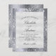 A modern, elegant wedding invitation. Faux silver metallic looking background decorated with faux silver glitter dust. Personalise and add your names and wedding details. Black coloured letters.