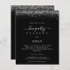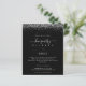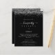 Silver Glitter Hen Weekend Itinerary Black Invite. A budget price SMALLER 4.5” x 5.6” alternative. Available in a SEMI-GLOSS 110 lb CARD STOCK which is the default option (thicker for invitations), OR a SATIN FINISH 80 lb THINNER PAPER STOCK (ideal for enclosures). Envelopes are an optional extra and are slightly larger than the card size. Glitzy style for your hen do weekend with a border of silver faux glitter on both sides at the top, and Hen Party in a handwriting style script. Easily personalise the text to your own details. You can also change the text and background colours via the customise further option if you wish.