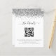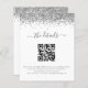 A value for money BUDGET alternative on a size 4.5 x 5.6” semi-gloss 110lbs weight, which is of similar thickness to a postcard (however is not suitable to use as a postcard.). PLEASE NOTE there is ONE invite per sheet. Budget Silver Glitter QR Code Wedding Details. A faux glitter border at the top on both sides with a stylish script with swashes for the header. Swap in your QR code to your wedding website for a convenient way for your guests to see all the details they need. To create a QR code, search online "generate a QR code"