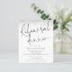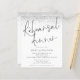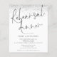 A budget price SMALLER 4.5” x 5.6” alternative. Available in a SEMI-GLOSS 110 lb CARD STOCK which is the default option (thicker for invitations), OR a SATIN FINISH 80 lb THINNER PAPER STOCK (ideal for enclosures). Envelopes are an optional extra and are slightly larger than the card size, This modern design has elegant informal set script for Rehearsal Dinner and a border of silver faux glitter at the top on each side. The rest of the typography you can easily personalise. You can also change text and background colours on either side if you wish via the Customise Further option.