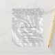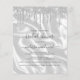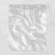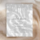 A chic, modern design featuring a white silk or satin background with a top border of silver glitter drips. The words "bridal shower" and the name of the bride-to-be appear in lowercase calligraphy script with decorative swashes at the beginning and end, with the remaining text in sans serif font. The white satin background and silver glitter drip border are repeated on the reverse. (To keep the swashes, replace only the letters of the bride-to-be's name, leaving the symbols in place.)