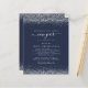 PLEASE NOTE There are two paper options to choose from for this size (4.5 x 5.6”) in the Budget range. For this product, I would highly recommend the semi-gloss which is a 110 gsm card stock, similar in thickness to a postcard. The Satin option is a much thinner paper 80gsm. The default is set to semi-gloss. The enevlopes may be slightly larger than the invite itself. Budget Silver Glitter Script Blue New Years Party Invitation. A glam faux glitter border is on each side top and bottom on classy navy, and New Year is in a stylish script with swashes. Easily personalise the text to your own details. You can also change the text and background colours via the customise further option if you wish.