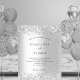 A faux silver metallic looking background. Decorated with faux glitter. Personalise and add your names and party details.