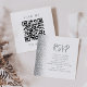 Budget Silver Glitter White Wedding QR Code RSVP Enclosure Card