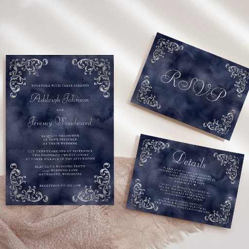 Vintage Silver Acanthus Navy Blue Wedding SuiteDesigned by Akhates Designs