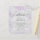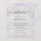 A modern, elegant wedding program, timeline. Faux silver looking background decorated with purple and faux silver glitter dust. Personalise and add your names and wedding details. Black coloured letters.