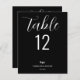 Double-sided black table cards feature your info in chic white lettering. Perfect for a modern wedding reception, wedding rehearsal dinner, anniversary party or any special event.