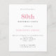 Budget Simple Text Blush Pink 80th Birthday Invitation. A value for money smaller 4.5 x 5.6 inch alternative defaulted to the semi gloss option which is recommended for invitations and is a similar thickness to a postcard. The satin option is much thinner paper. The font colour and type can be changed via the edit menu. You can also change text and background colours on either side if you wish.