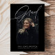 Simple Trendy Calligraphy Photo Graduation Announcement features one photo on the front and two photos on the back.