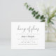 Yikes! Unforeseen circumstances happen, and when they do, you can easily let your guests know in a fun and easy way that you are needing to postpone your wedding date with this minimalist black and white wedding postponement card. Featuring "change of plans" in a chic calligraphy font along with simple serif typography. As part of the budget selection here on Zazzle, these invitations do not come with envelopes nor do they fit snugly in a standard-sized envelope. The closest size is A6 but there will be a gap of approximately half an inch. If you don't mind the lack of snugness you could use such widely available A6 envelopes. Otherwise, this design can be transferred to a standard 5x7 format (which comes with envelopes) using the design transfer tool. As a rough guide, as of the time of writing, 100 budget invitations (including a volume discount) would cost around $39 whereas 100 standard 5x7 invites including envelopes would cost approximately $135. Your mileage may vary depending on Zazzle's available promo codes, site-wide sales, or changes in pricing.