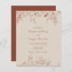Being on a budget doesn't mean you have to sacrifice design and beauty! Simple and elegant this boho floral wedding invitation has lovely hand-drawn wildflower borders. The colours are bohemian with new modern muted burnt orange and terra cotta tones. See coordinating items in our shop. **Please Read Before Purchasing** Budget stationery measures 4.5 x 5.6 and fits inside an A6 envelope. It does not come with envelopes, but you can add white envelopes to your order. Each sheet is one item - no cutting is required. The default cardstock is bright white with a semi-gloss finish and 110lbs weight which is suitable for stationery. Please note: if you swich to the satin paper option it is a thinner 80lb paper, which is more like magazine pages than cardstock. Use Live Design Service if you need help with your design after making changes or if the design no longer looks right or is cropped. You can upgrade your order to a larger size, higher quality paper and envelopes by clicking transfer and choosing 5 X 7 flat card or click on our store Enchanted Finch for other paper options. Your order goes directly to the printers. What you see on the screen is what will be printed and shipped to you. Please triple-check spelling and all details before placing your order to ensure accuracy.