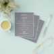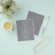 An affordable value paper of 80 lb. weight, these small grey dinner menu cards feature your food choices in chic white lettering. Perfect for a modern wedding reception, wedding rehearsal dinner, anniversary party, or any special event with a sit-down dinner. *Measures 4.5" x 5.6" (or choose from 2 other sizes.) The Live Design Service can help you with your design layout, size or adjust the colour if needed.